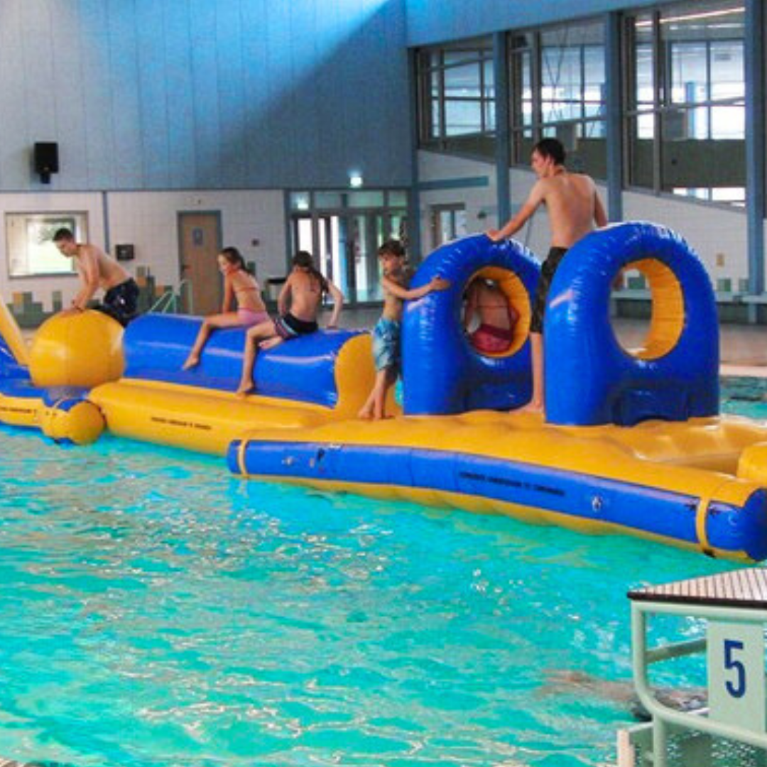 Stor oppustelig forhindringsbane med 5 moduler; Raft, klatreø, balanceø, hummer og rutsjebane. Sjov forhindringsbane fra det tyske Airkraft. Størrelse: 18 x 2 m. Krav til vanddybde Min. 1,6 m.