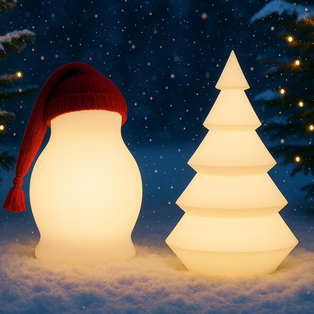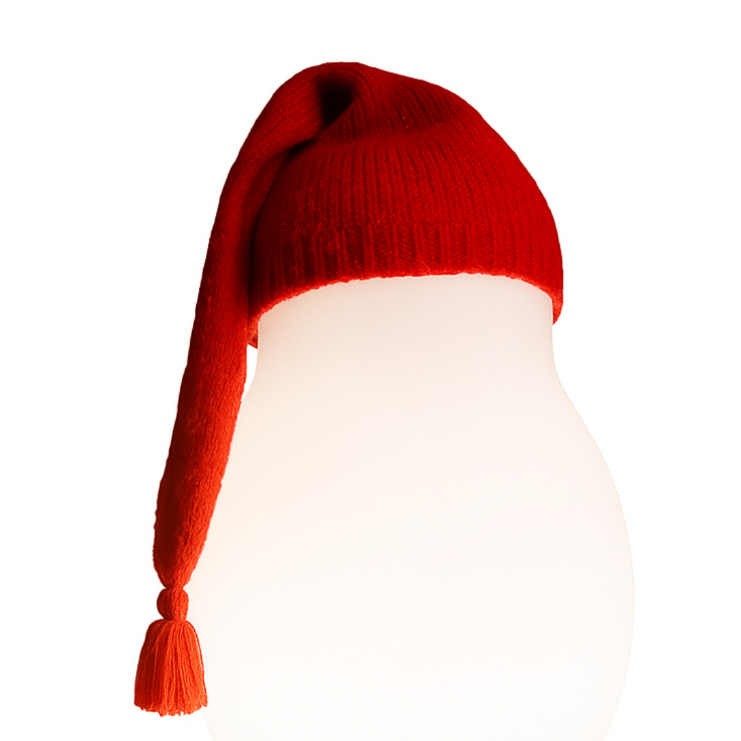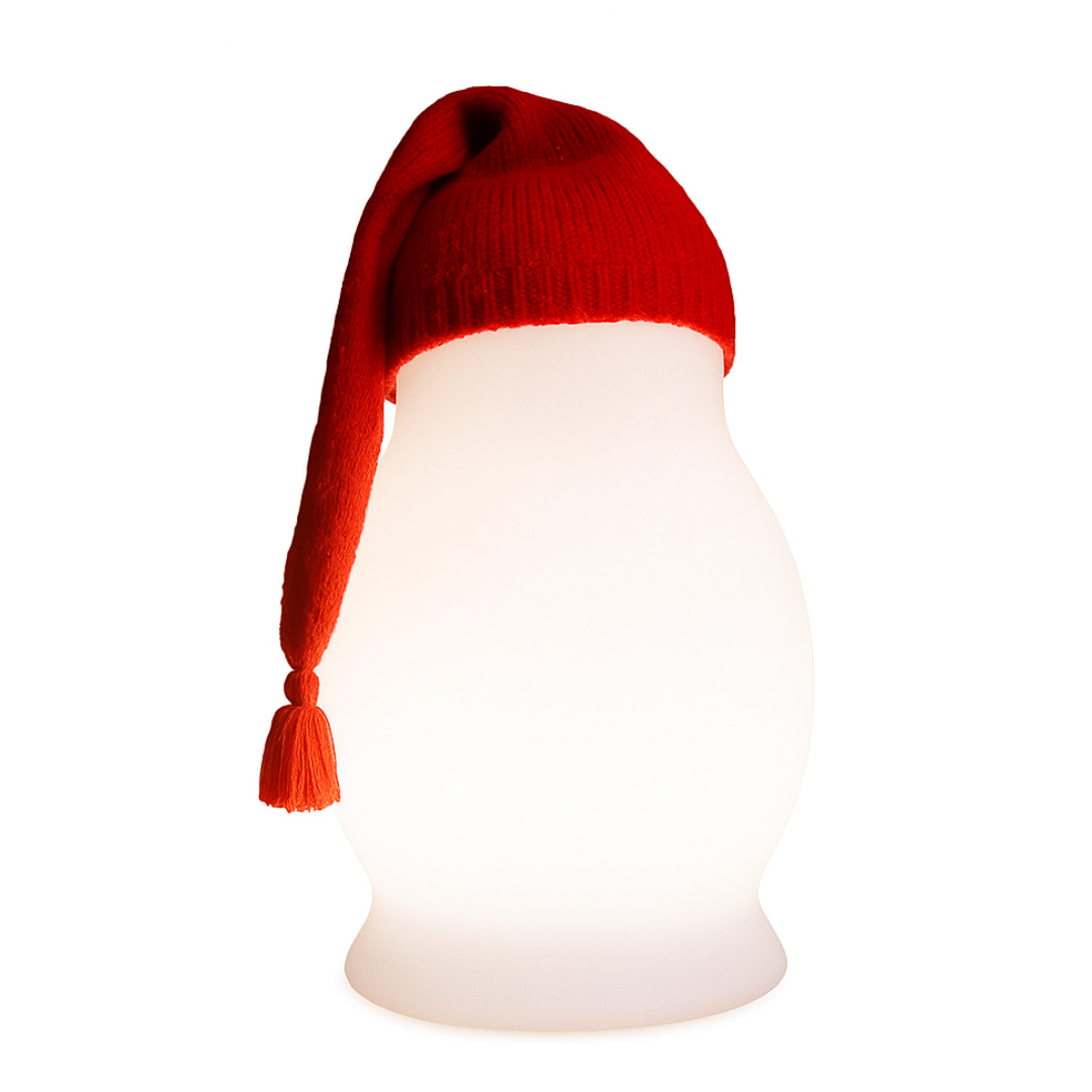 Vi har fået en dygtig kvinde til at hækle den skønneste hue til vores snemandslampe.