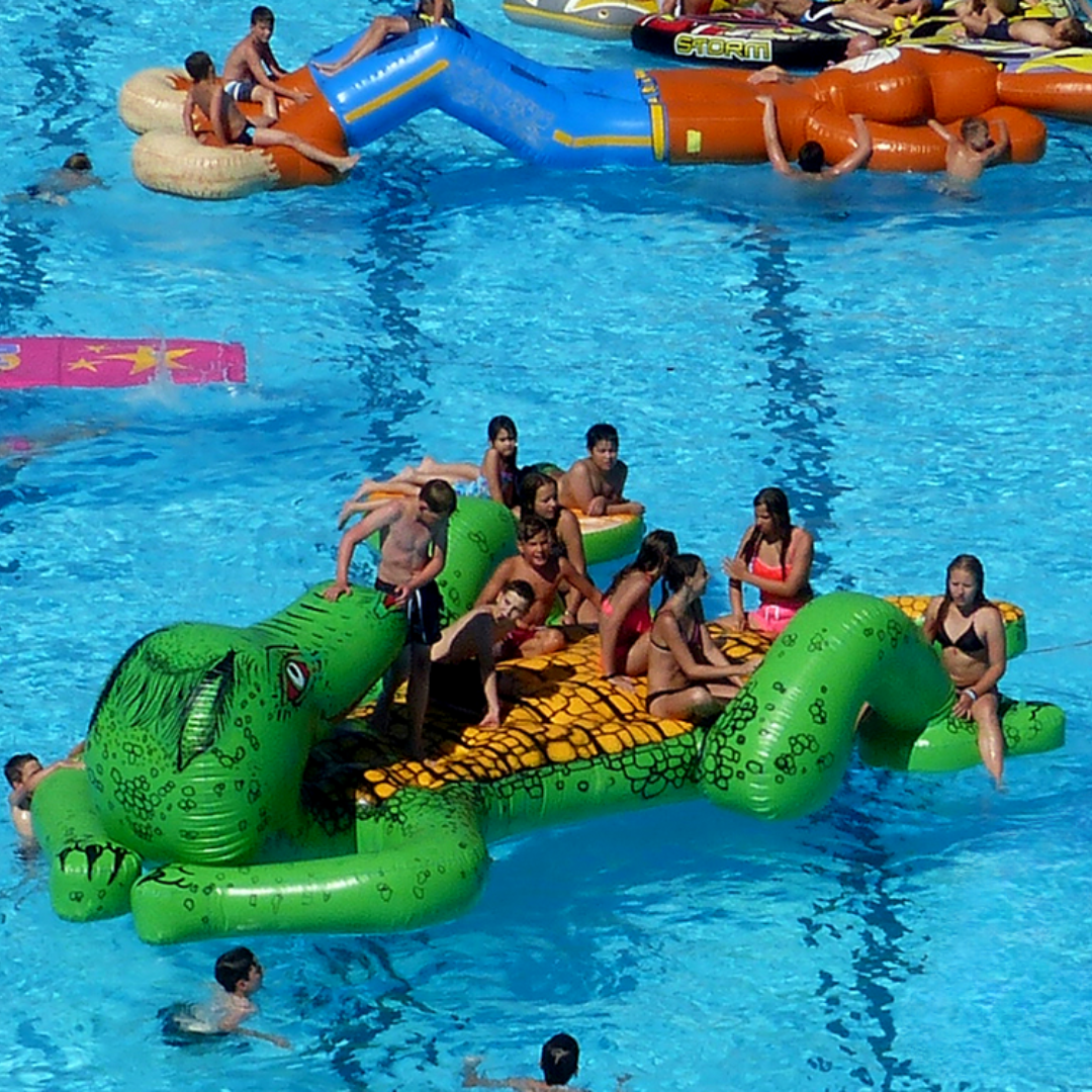 Den dovne drage Shu Shu er slet ikke farlig. Den flyder helt fredfyldt rundt på vandet og giver med sin store krop adgang til mange timers leg og afslapning.