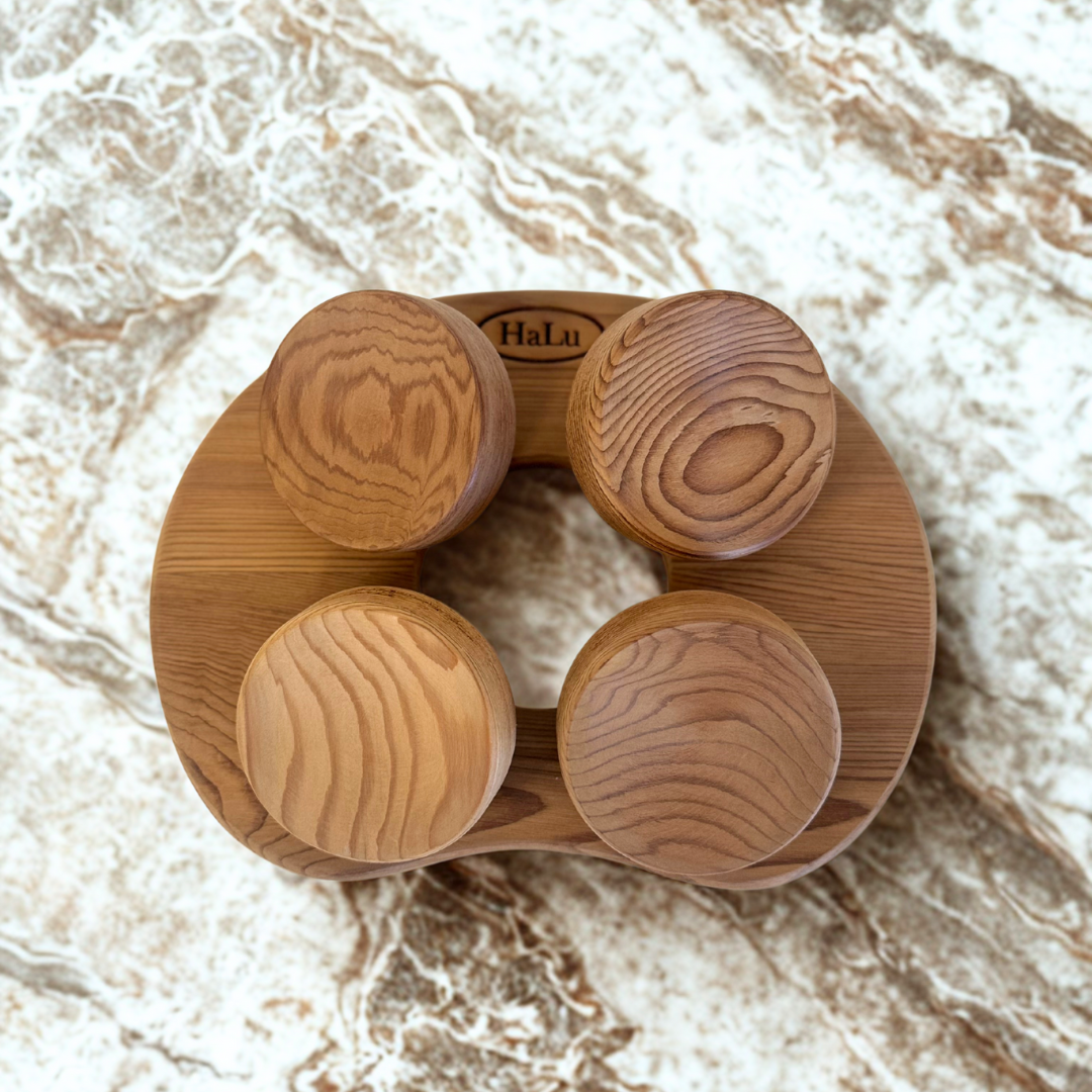 HaLu nakkestøtte fra SAUNAGUT, med fire fleksible punkter for optimal komfort og hovedstilling. Saunapuden fra HaLu har monteret en 4-punkts hovedstøtte så hovedet hviler i en fordybning og dermed forhindrer det i at vippe til siderne. Designet giver derfor nakkemusklerne mulighed for at slappe helt af. Materialet er en smuk rød cedertræ der foruden at se rigtig flot ud også har samme hygiejnestandarder som traditionelle saunabænke, plus den genkendelige og behagelige duft.