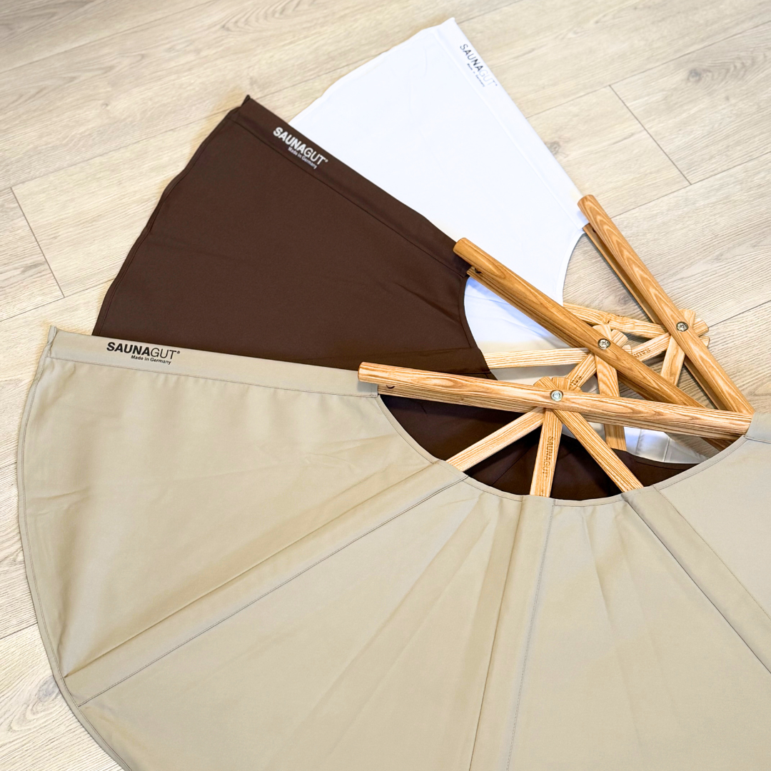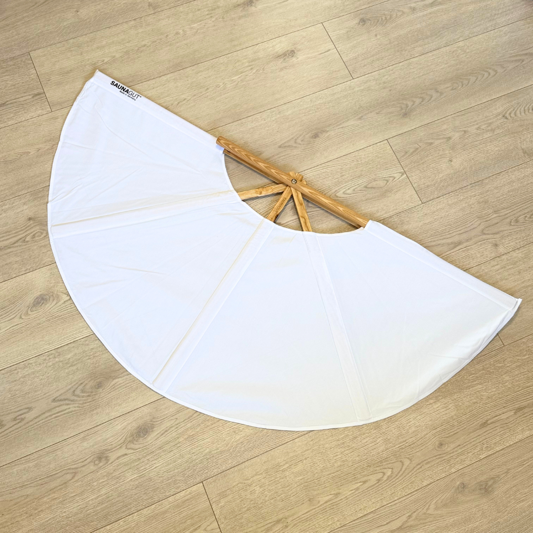 SAUNAGUT vifte til brug i saunaen. Størrelse: 148 cm. i diameter når den er udfoldet. Vægt: 960 gr. Den findes i flere farver og størrelser.
