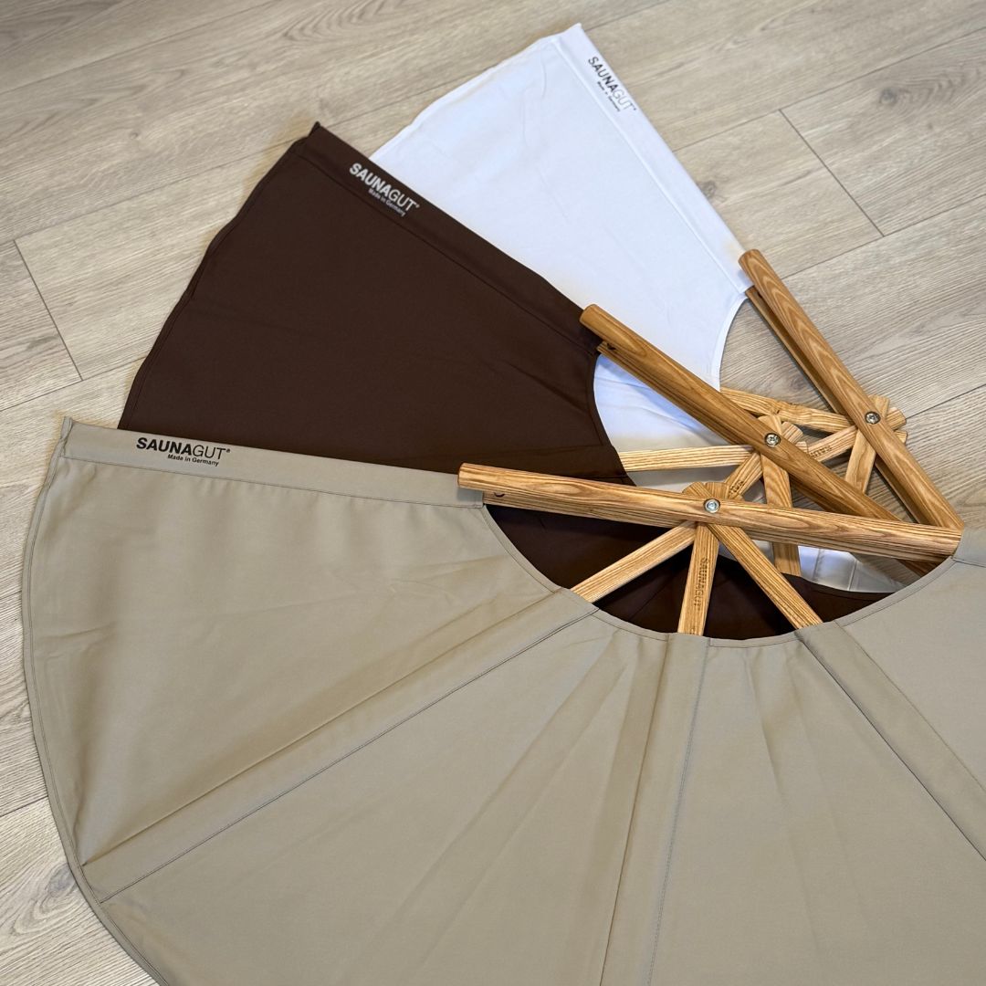 SAUNAGUT vifte til brug i saunaen. Størrelse: 148 cm. i diameter når den er udfoldet. Vægt: 960 gr. Den findes i flere farver og størrelser.